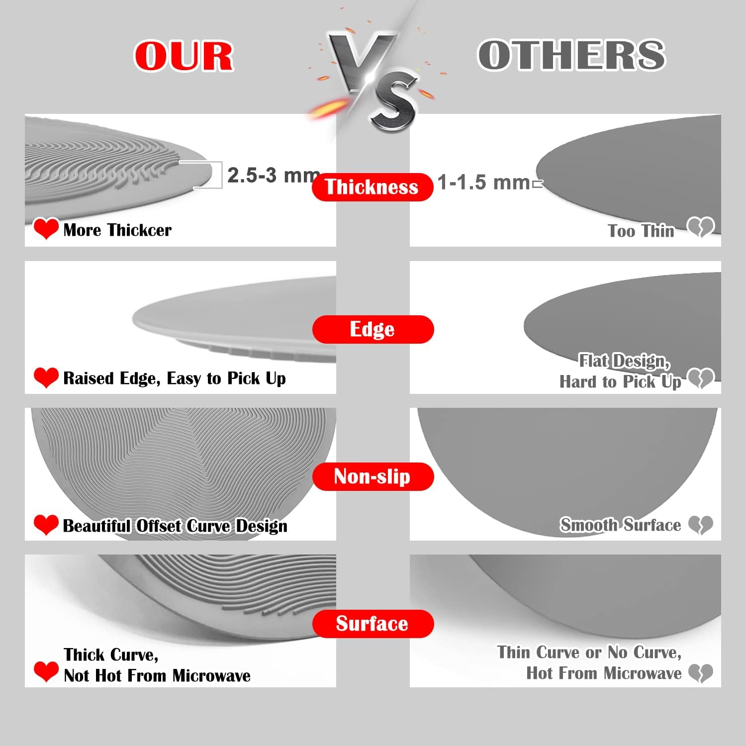 - 【Multi-Purpose】Can be as Microwave Mat, Trivets, Dish Drying Mat, Utensils Rest, Baking Mat, Pot Holder, Table Place Mat, Jar Opener, Coffee Coaster, Splatter Guard, Food Cover, Hot Pad for Kitchen Counter, etc.