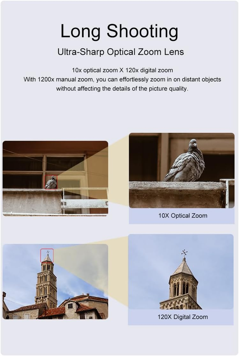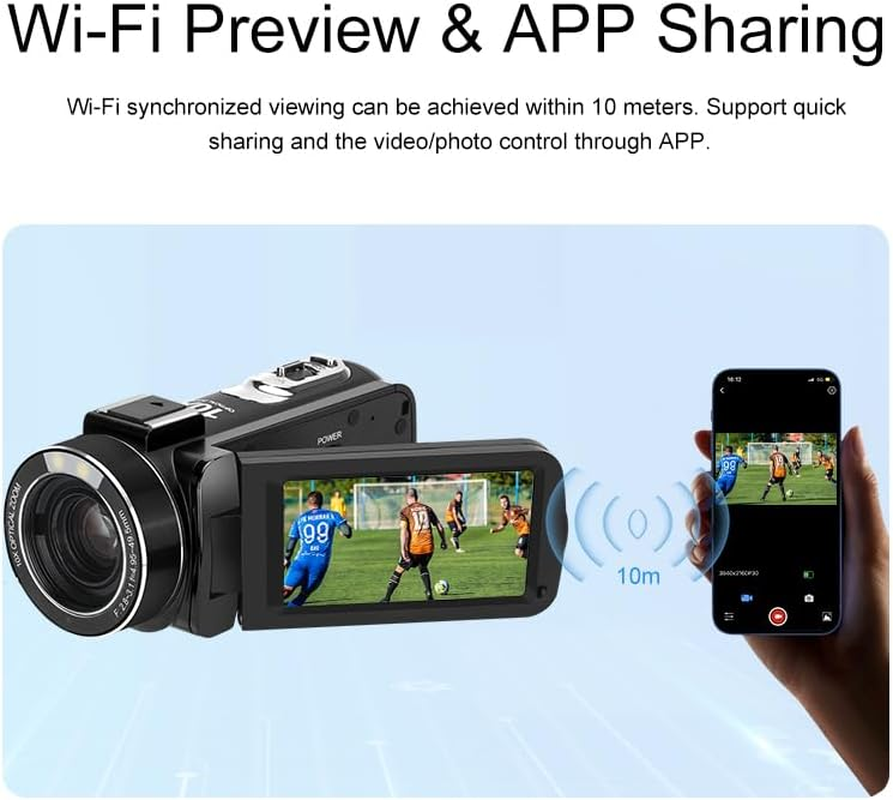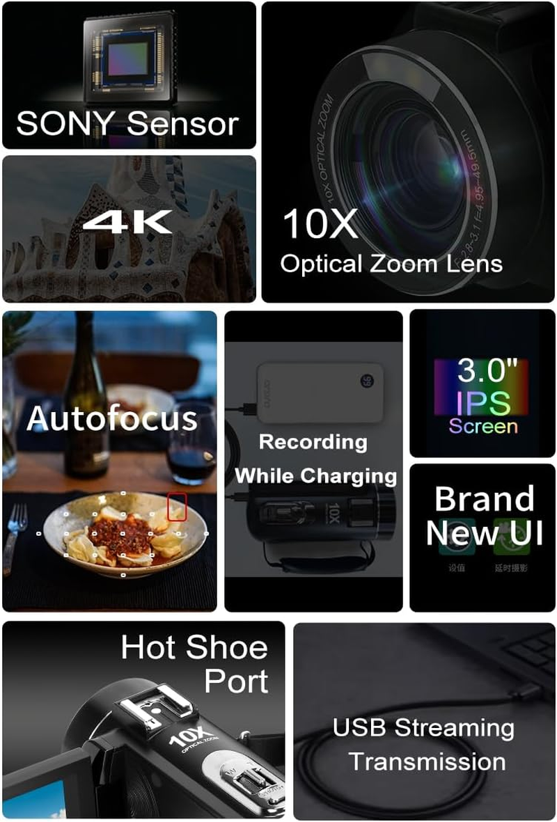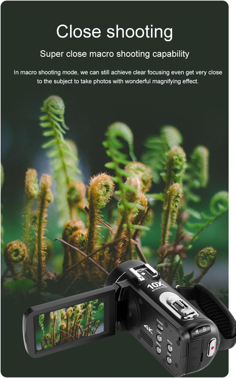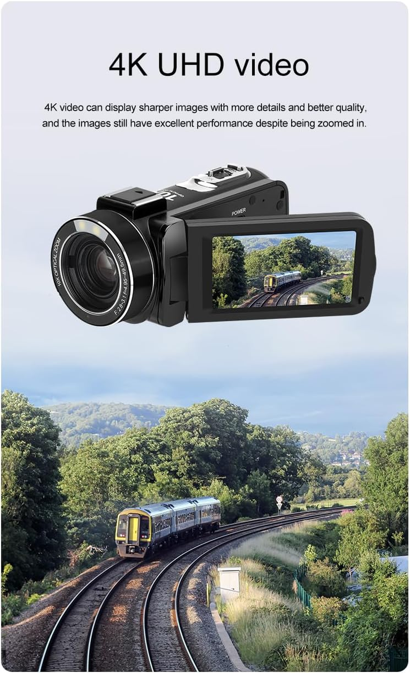 - 10X Optical Zoom:This 4k camcorder supports 10x optical zoom,12x digital zoom,and 120x intelligent zoom products,capturing distant scenery. This camcorder is ideal for situations where you need to capture distant objects while requiring high-quality images.