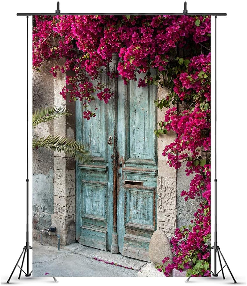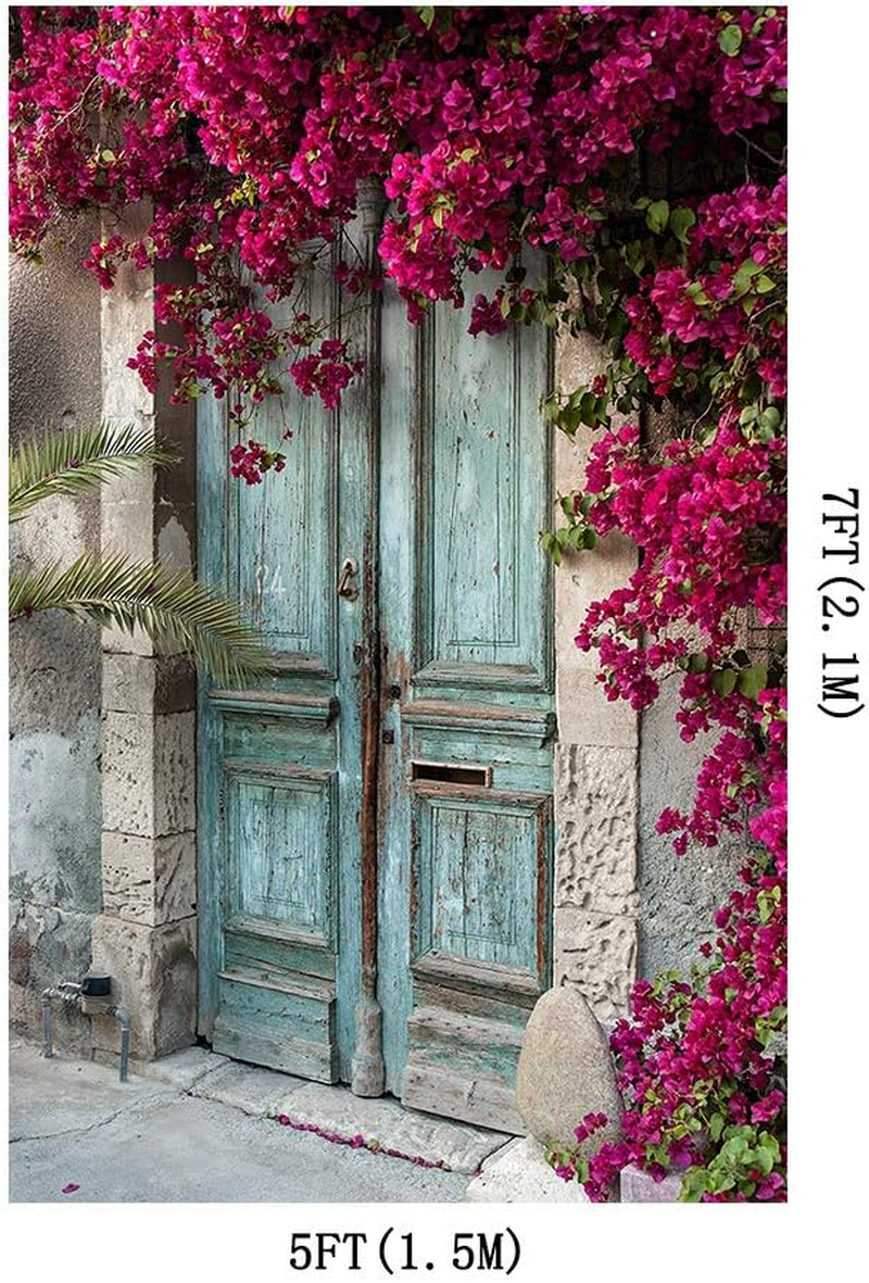 5X7Ft Spring Flowers Backdrop Old Wood Door Photography Background Outdoor Natural Florals Scene Shoot Backdrops for Portrait Photo Video Studio Prop