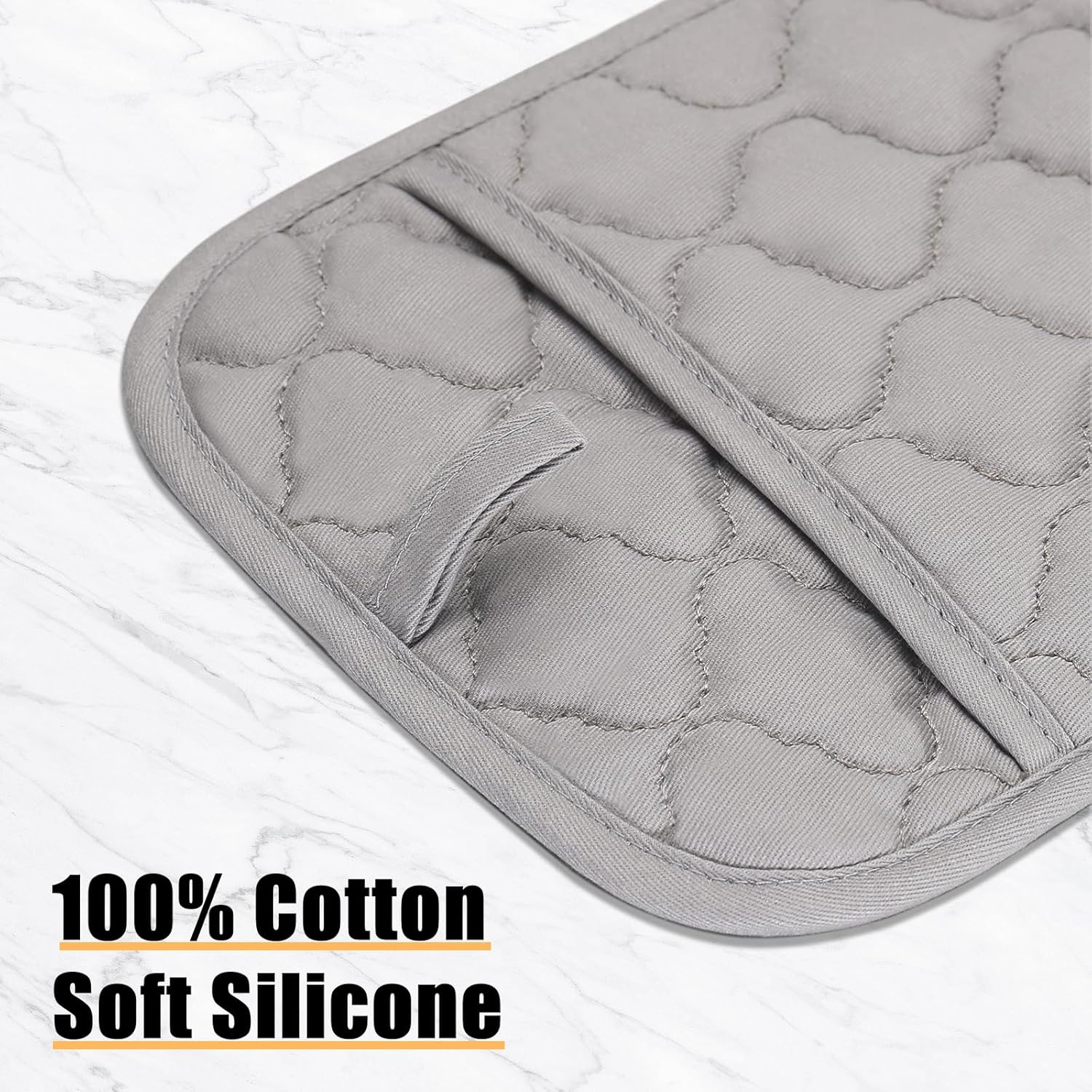 • 500 °F HET RESISTANT & ANTI-SLIP SURFACE: The oven mitts and potholders are lined with quilted cotton to maximize insulation from the heat and protect your skin. The kitchen gloves and pot holders can heat resistant up to 500 °F/ 260°C. The surface anti-slip silicone can be better grip dishes, pots and pans safe.