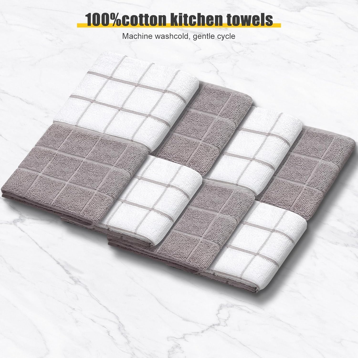 • SOFT & ABSORBENT DURABLE TOWELS: All dishcloths and towels are made of pure spun cotton with a waffle weave pattern. These materials are ultra-absorbent. At the same time, these towels are lengthy lasting and last for various washes. If hung dry in time, it is not easy to reek of bad odors.