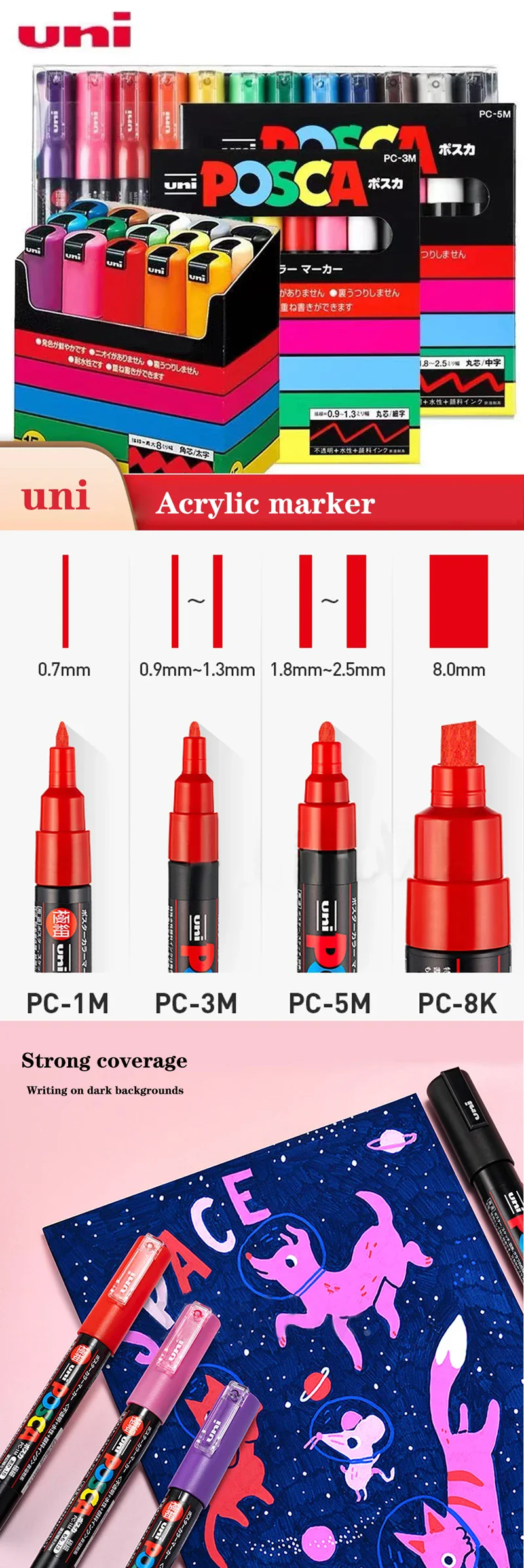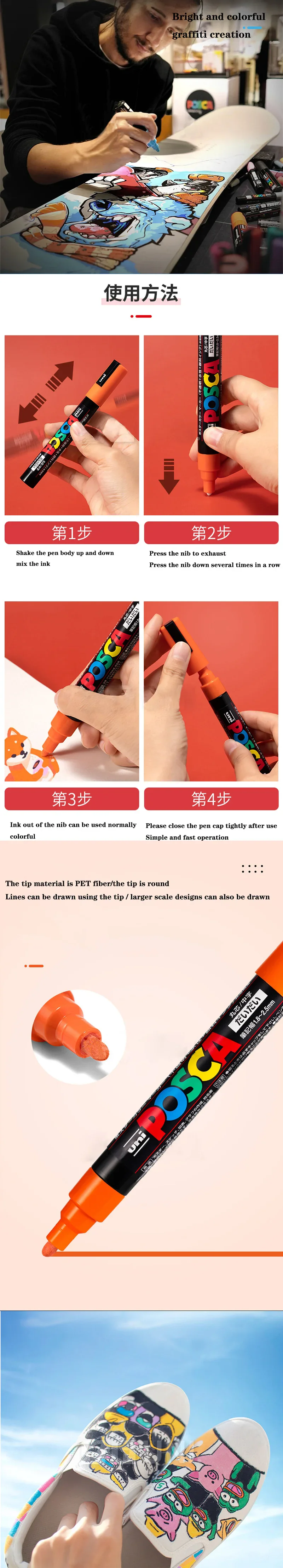 POSCA Marker Set Graffiti New Packaging PC-1M PC-3M PC-5M POP Advertising Poster Pen Drawing Hand-Drawn Student Art Supplies